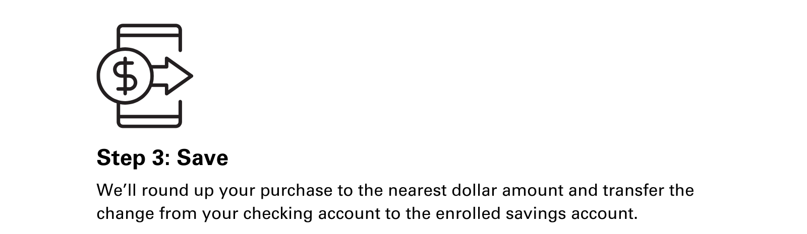 Every debit card and ATM purchase counts! We'll round up each one and include it in your daily SaveUp transfer.